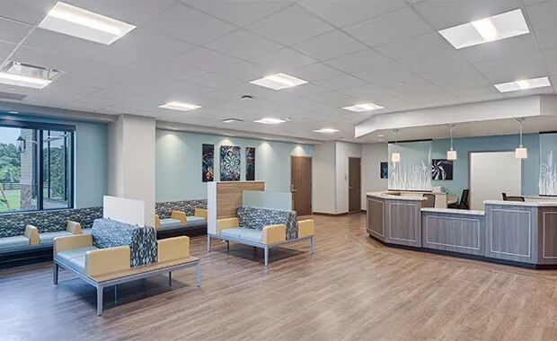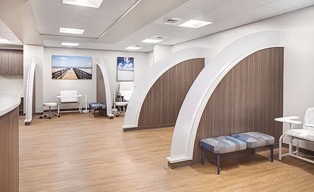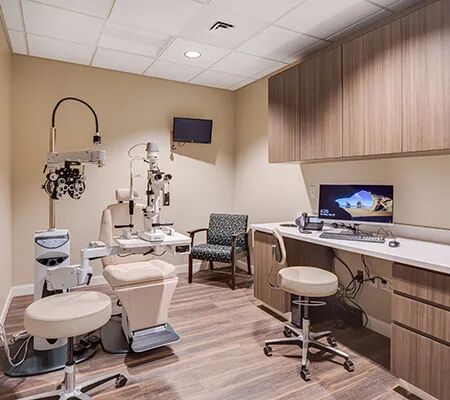 眼科檢查室中的裝飾材料傾向于耐用性和易清潔性。室內空間寬敞,允許患者家屬陪同治療。原文來源:Healthcare Design Magzine原文標題:Holistic Hospitality: Center for Advanced Healthcare at Brownwood圖片來源:CHADMELLON PHOTOGRAPHY