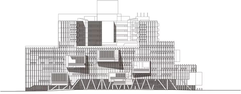 建筑師研究了現(xiàn)代醫(yī)院的類型學(xué),希望打造出一個(gè)考慮醫(yī)患雙方、成為城市標(biāo)示、激活社區(qū)的建筑,醫(yī)院外觀融入自然環(huán)境,運(yùn)用可持續(xù)發(fā)展策略,為患者和工作人員提供最優(yōu)環(huán)境。